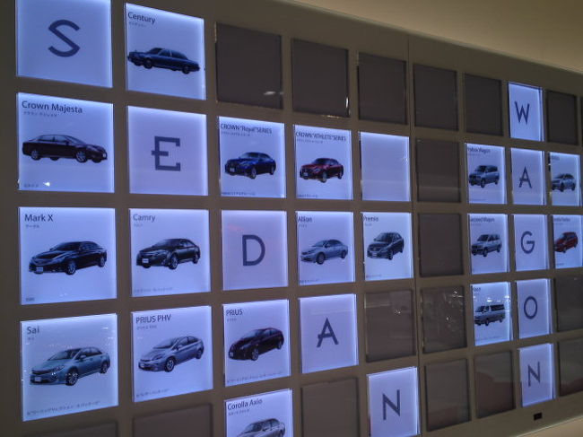 壁にはTOYOTAのいろんな車がライトアップされる。