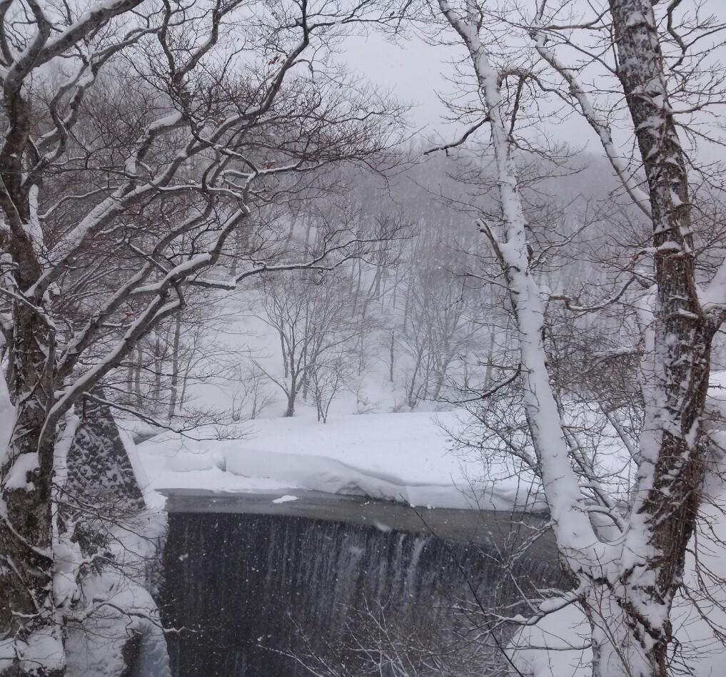 「大人の水遊び」でキャニオニングをした時に降りた滝もすっかり雪景色。