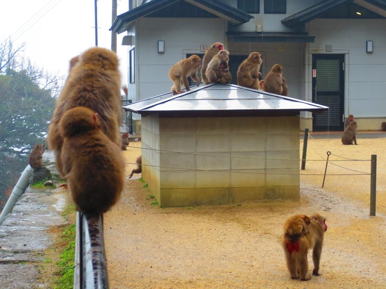 ここのサルはすべて野生。小麦や芋をもらうために山を下りてくる。