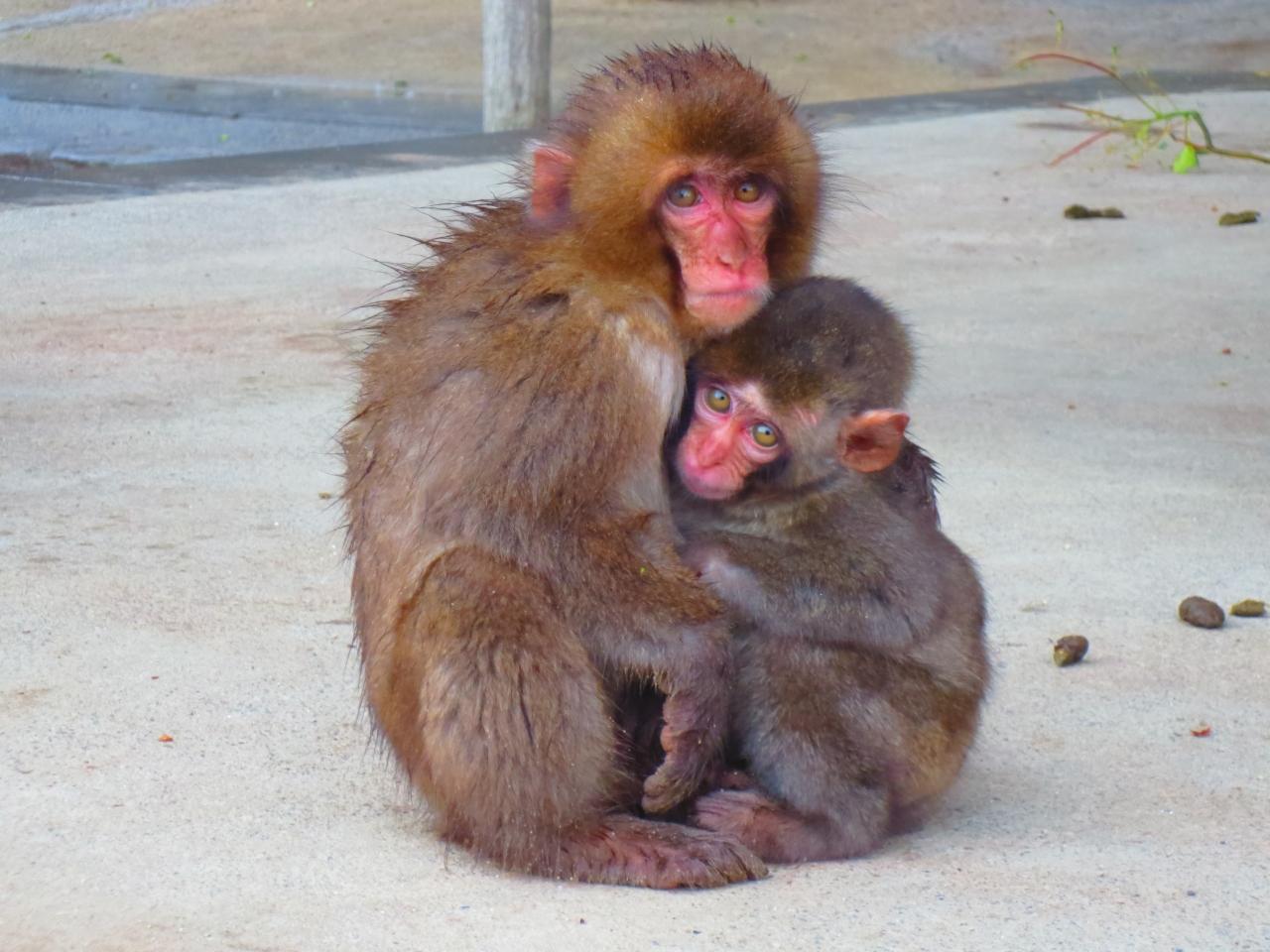 さるっこレールを降りると、すぐに親子のサルが出迎えてくれた。