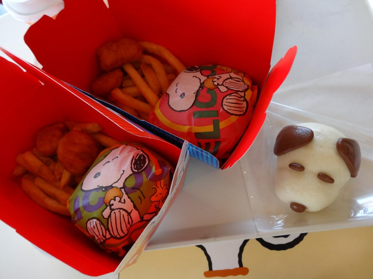 スヌーピーピクニックランチ(一つはチーズバーガー、一つはチキンバーガー)は1,150円