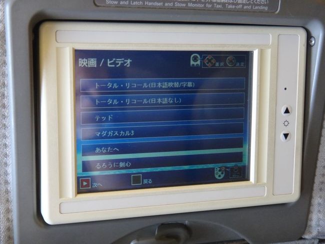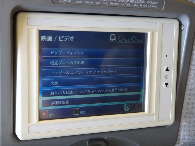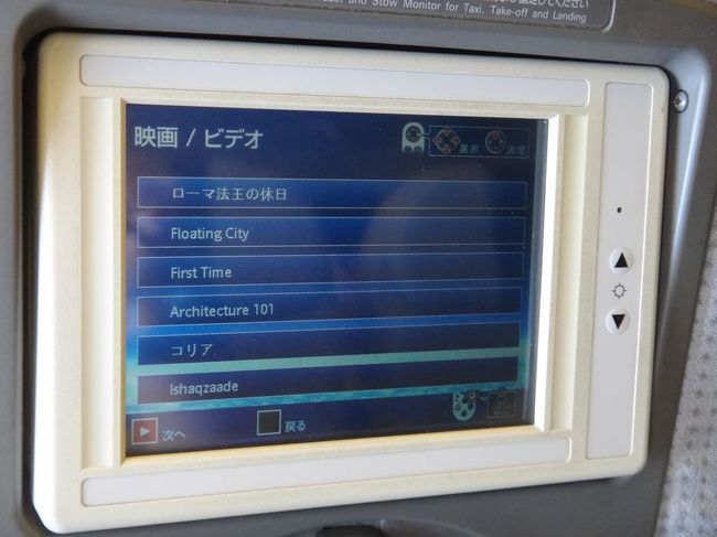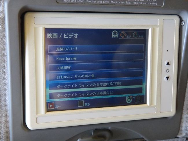 機内の映画一覧。3本くらい見た。これも旅の楽しみのひとつだと思っています!