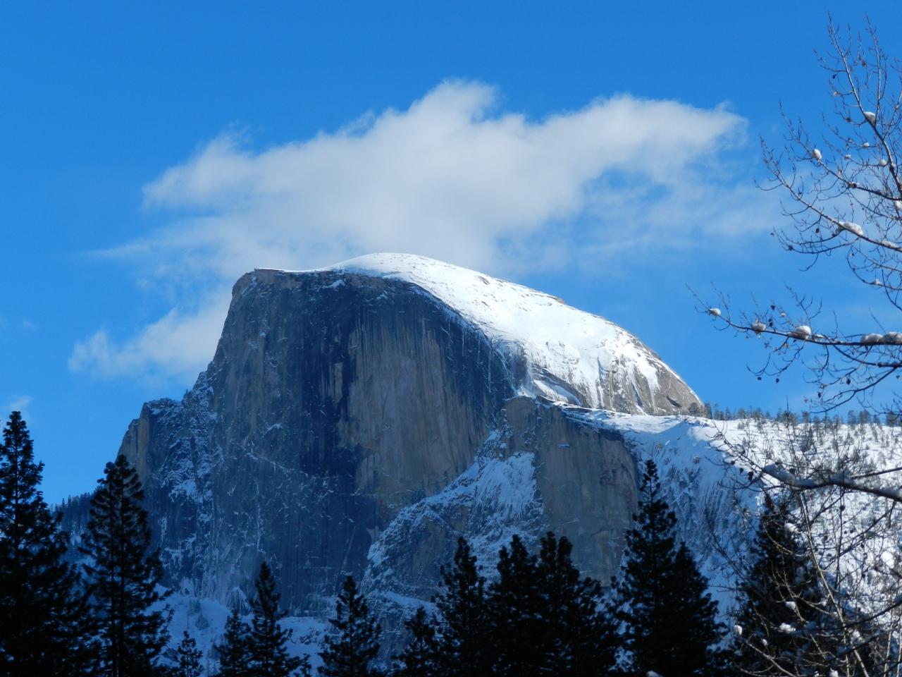 次に案内されたのは、「ブライダルヴェール滝」を間近で見られるスポット、「ハーフドーム」(=表紙写真)や何より楽しみにしていた「ヨセミテ滝」を遠望できるスポット等々です。