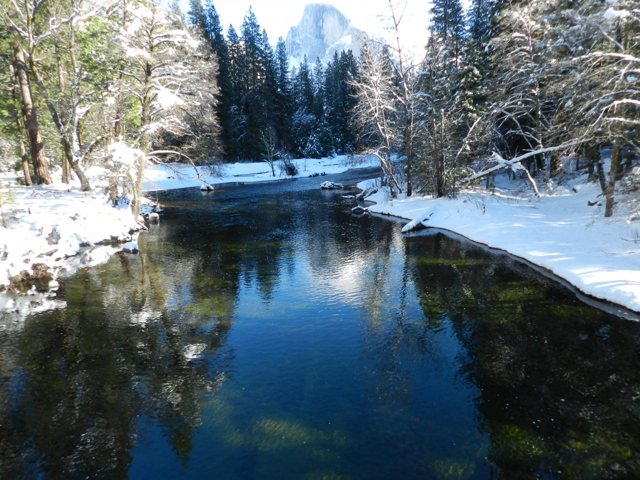 サンフランシスコに詳しい友人から「年末年始なんかにヨセミテに行ったら、吹雪で行けないこともあるぞ」と聞いていて、最悪はツアーが催行されない可能性があることも覚悟していましたが、当日はウソのようなイイ天気で、空も山も滝もめっちゃ綺麗に見えました!