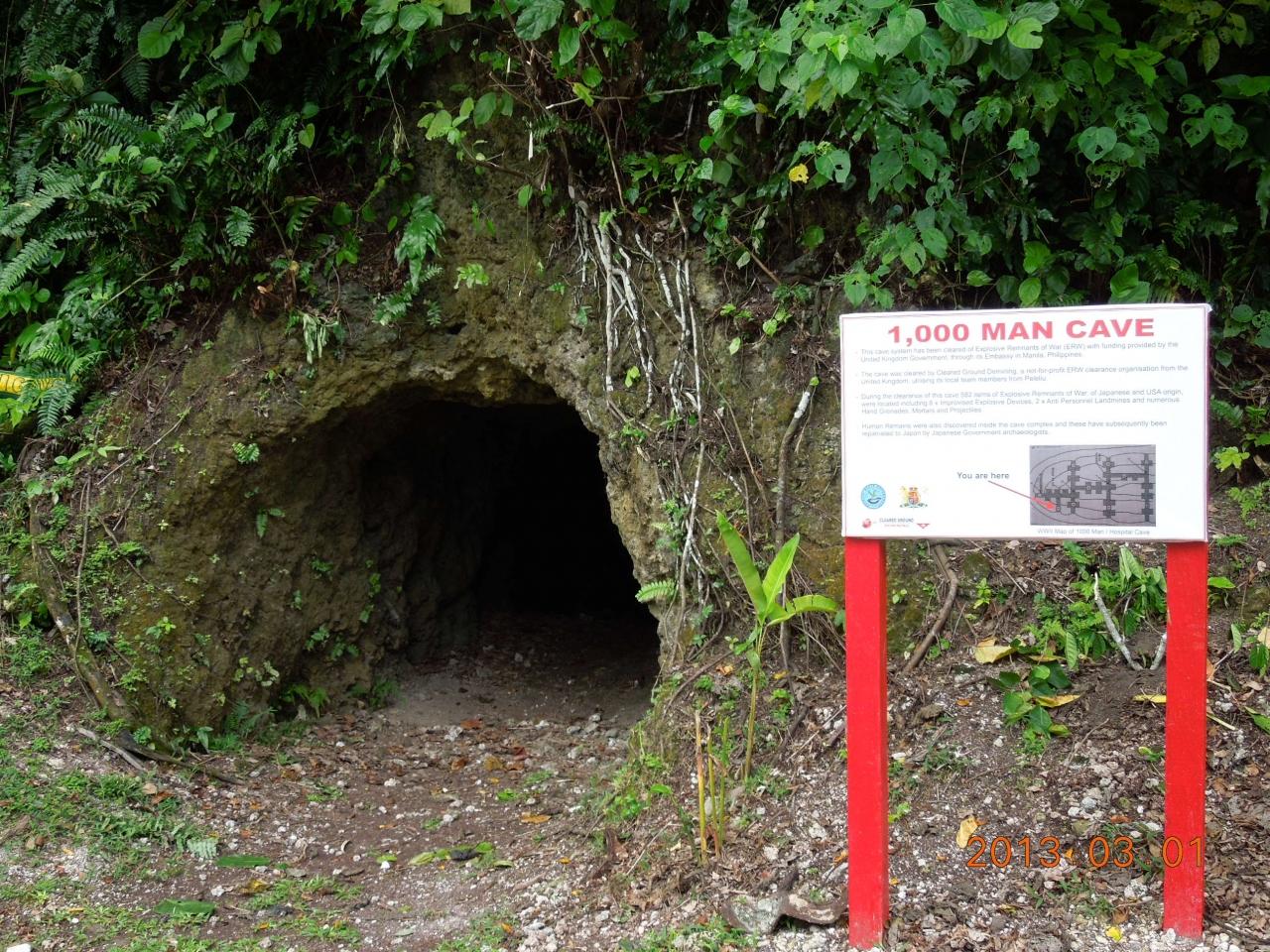 この壕は海軍の設営隊が建設したのである。名前の通り、内部には千人が入れる位に大きいのである。 -
