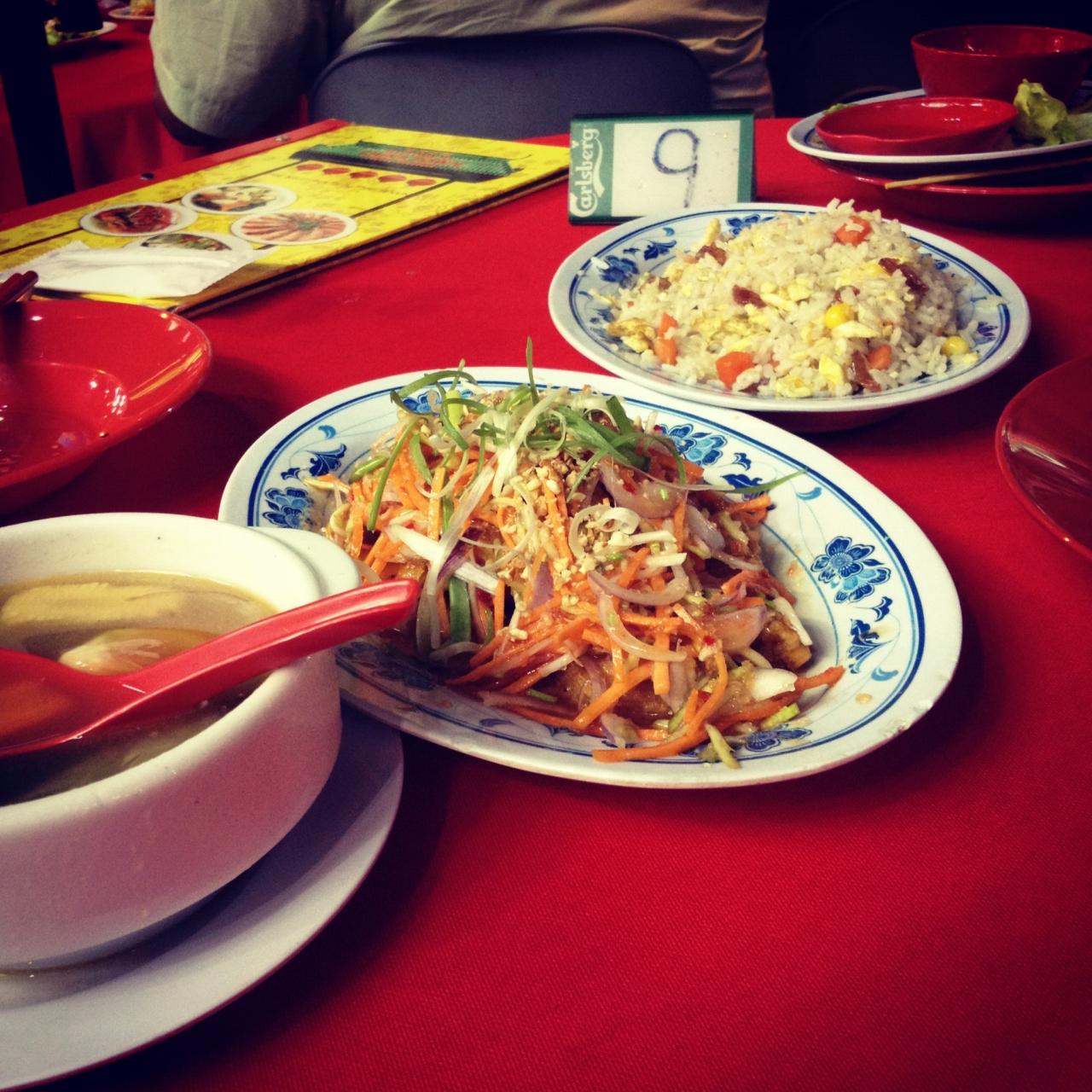 チャイナタウンで夕食。片付けるときは、一気に!