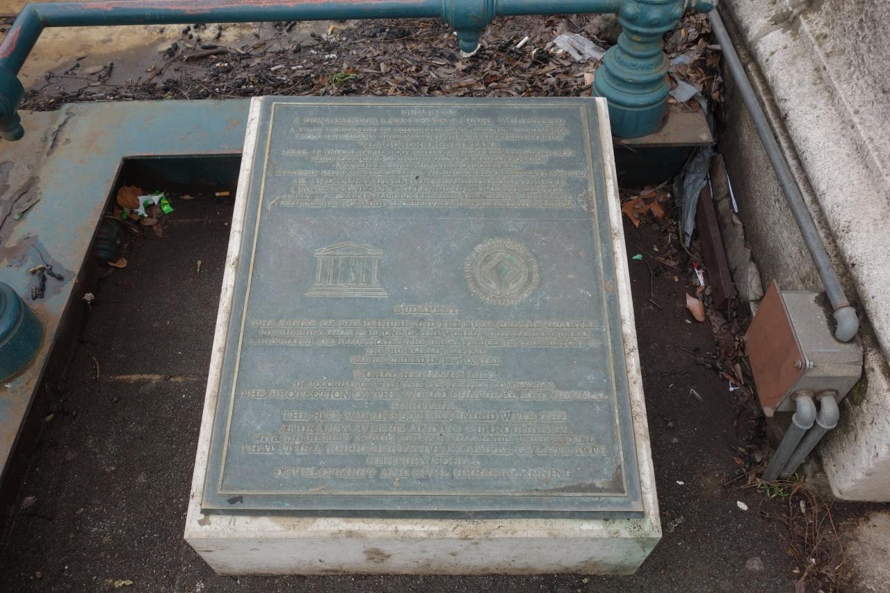 この少年の近くに、ユネスコの世界遺産プレートがあります。