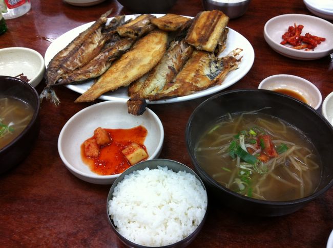 朝食は、決めてあった焼き魚定食です。もし行かれる方は、何軒か同じような店があるのですが、「キョンブクテブフェッチム」というお店をお勧めします。我々は今回が3度目。ふわっとしたジューシーな魚をぜひ頂いてください。