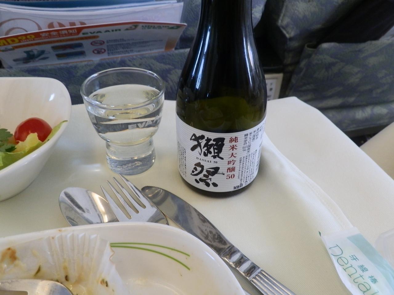 機内食で大吟醸をいただきました。