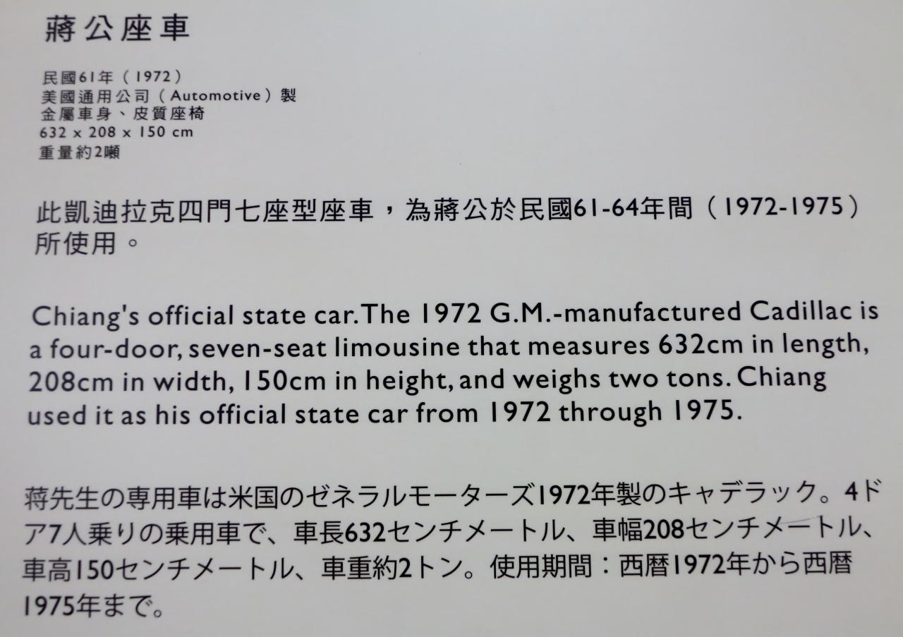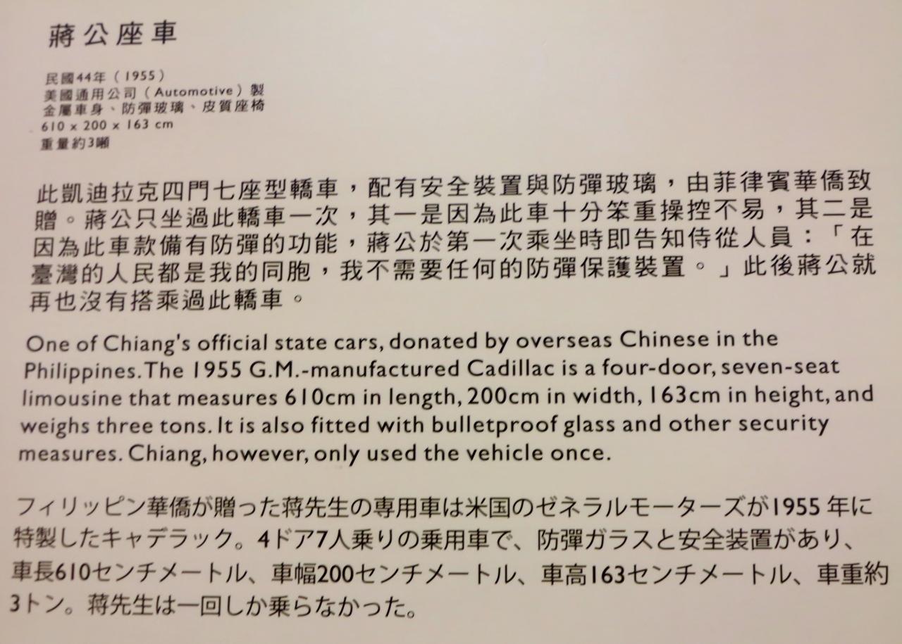 •中央通路 - 蒋介石が生前乗用した2台のキャディラックと公園の模型が展示してある。