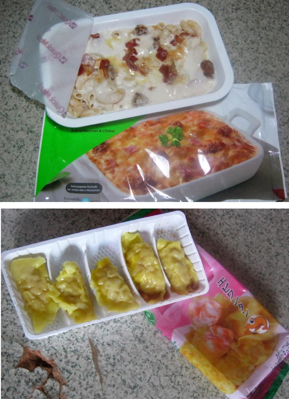 外に出たかぁないけど腹は減るんで仕方なく近くのコンビニでミニビザ30バーツ スパゲティ35バーツ(←写真)で済ませたよ。 でも全然足りない。 75バーツといったら今の為替レートで約240円。 もう少し出せば日本でノリ弁当とかシャケ弁当が食べられちゃいますネェ。
