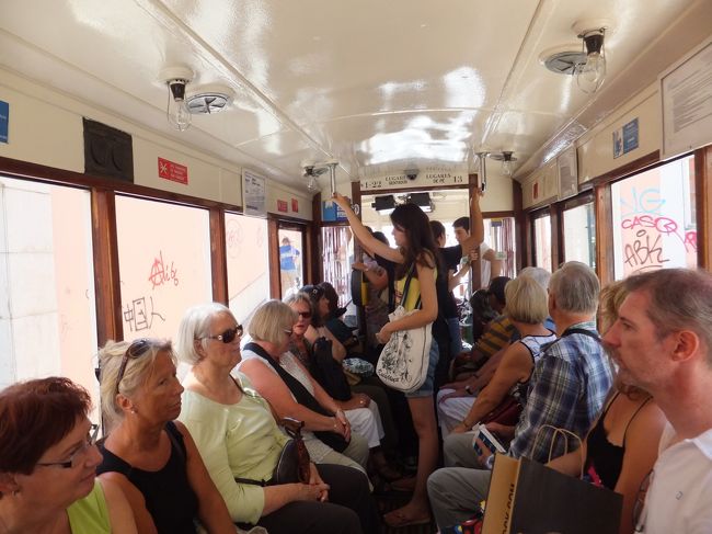 坂を登るのが面倒なのか、中まで入るのがめんどくさいのか分りませんが、トラムの外に足をかけて乗っかる人も数人いました。