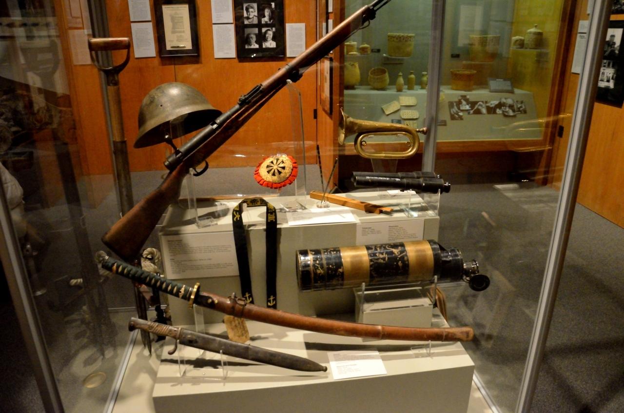 太平洋戦争当時の日本軍の装備の展示。