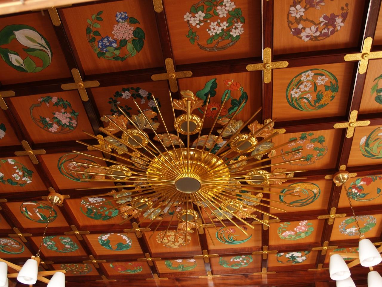 山門屋根の四隅に蓮の実の飾り瓦が上がっている。本堂は銅葺きであるが、山門前に鬼瓦が飾られているから、以前は瓦屋根であったのであろう。