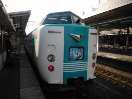 天王寺駅から「くろしお3号」に乗車、国鉄型振り子特急381系です。