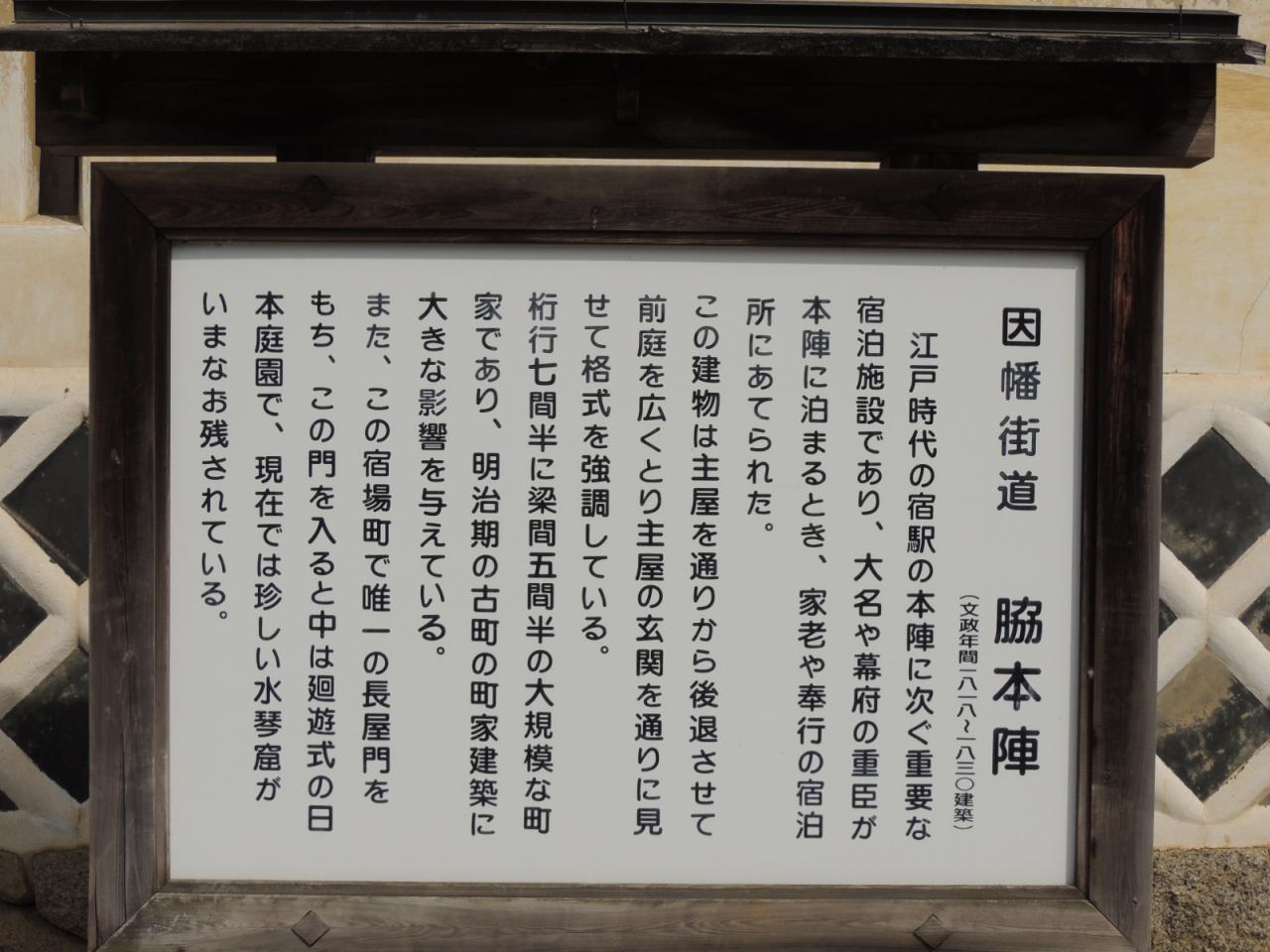 旧大原町の因幡街道・大原宿は山陰・山陽を結ぶ重要な宿場町として栄え、参勤交代の本陣・脇本陣が当時の面影を居間に伝えています。