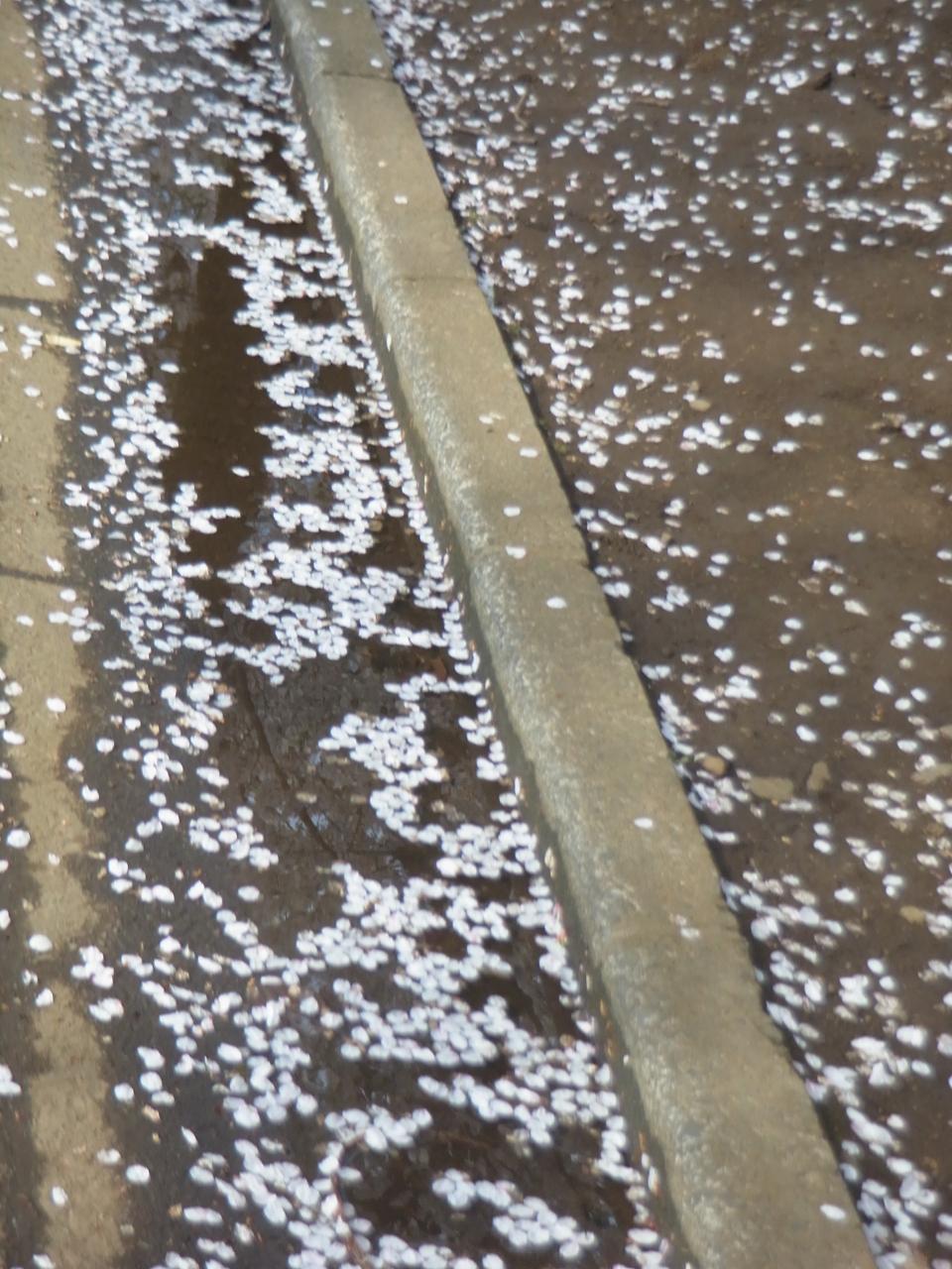 道の両端にも、落ちた花びらがそれだけで花が咲いたように彩っています。