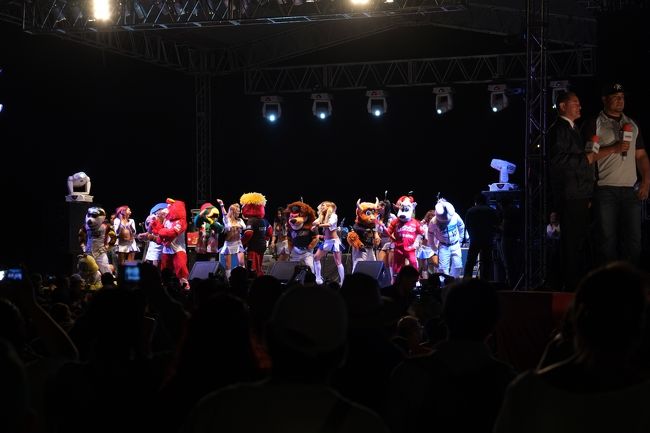夕食後、二人で町を散策、野球の開幕式?、でたいへん賑い