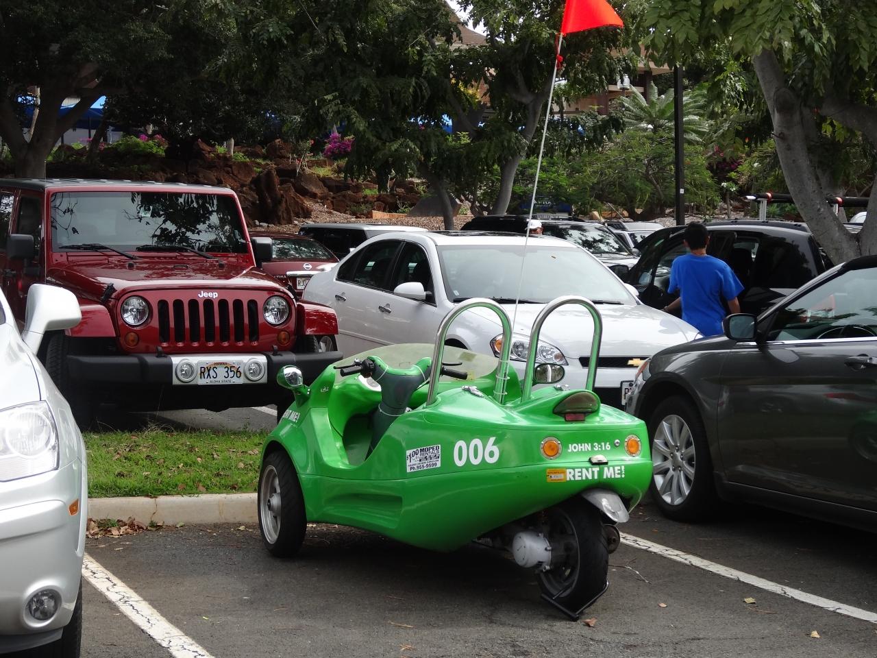 車で走ってると、ワイキキは晴れでも島の真ん中あたりは曇りで、北は雨とか、西は晴れでも東は雨とか、ちょっと走っただけで天気が変わる。