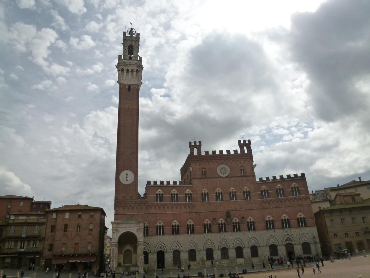 市庁舎の「マンジャの塔」が聳え立ち、シエナらしい景色。