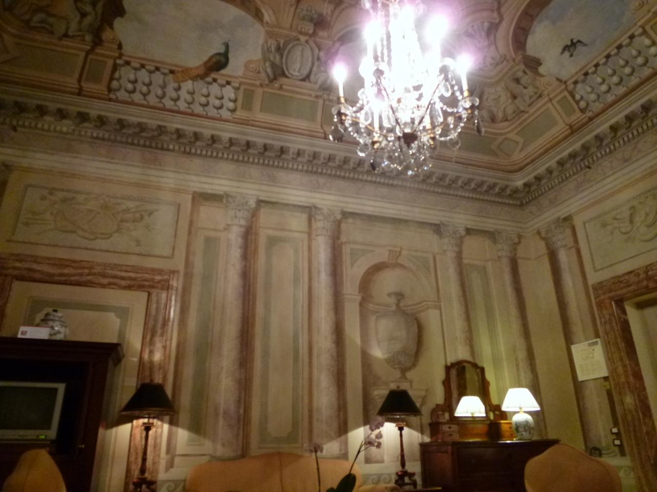 シャンデリアの優しい明かりで浮かび上がるフレスコ画。