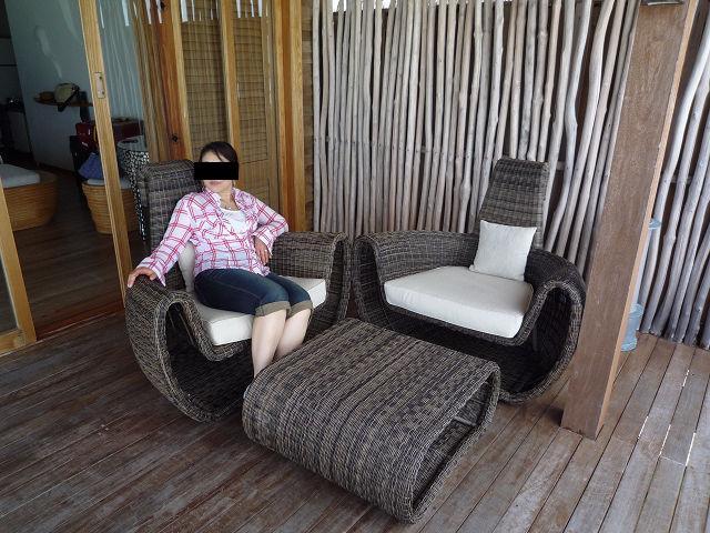 少しぱちゃぱちゃと泳いだ後は、部屋のテラスで、極上のダメ人間タイム。