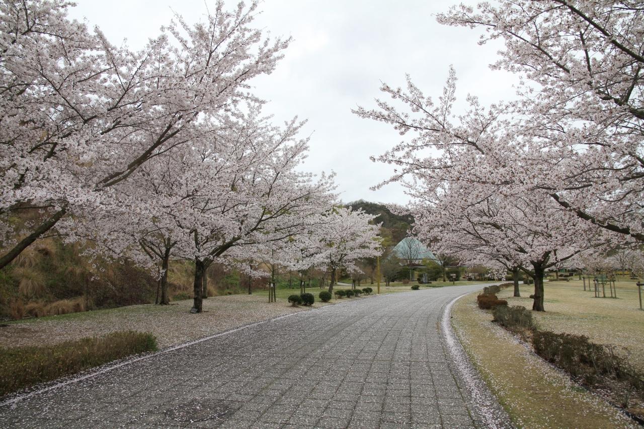 筆影山頂下の駐車場からは一周が400mの園地となっていて、春には2000本のソメイヨシノが咲き、花見を楽しむ多くの市民でにぎわいます。