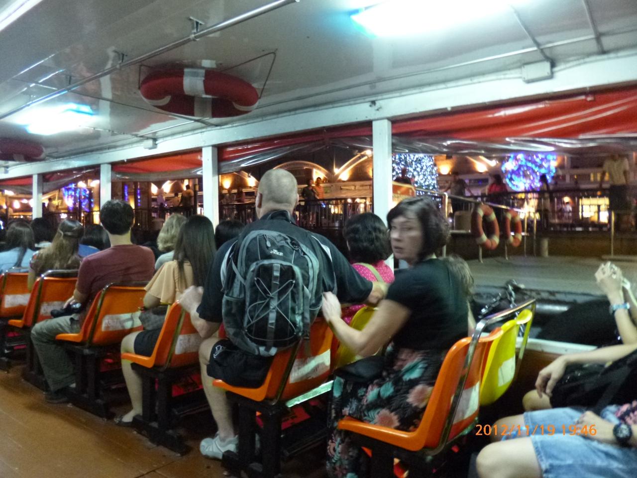 アジアティック・ナイトマーケット行き無料シャトルボートに乗ります。 -