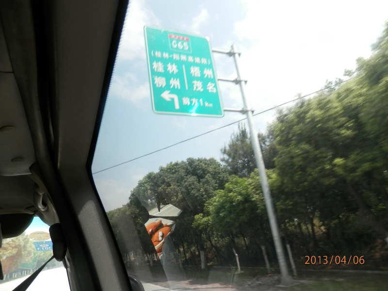 写真は130406-1125.自動車道の案内板。私たちの旅程はひたすら桂林を目指すようです。