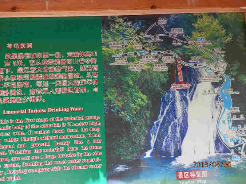 1328.広西チワン族自治区漓江古東風景区。滝の説明図。赤い印が現在地。めずらしくはっきりくっきり印が分かる。