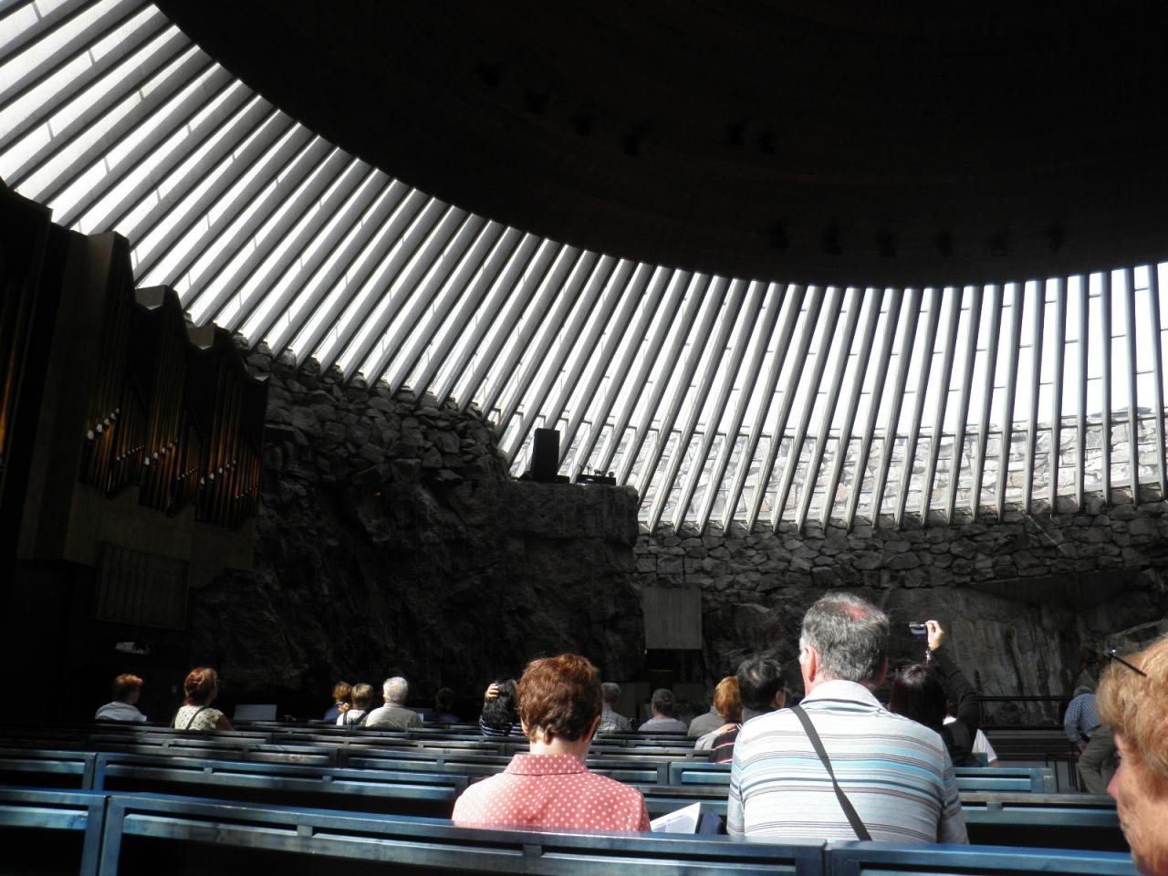 他には無い、岩をくり抜いてフタを被せたような教会です。