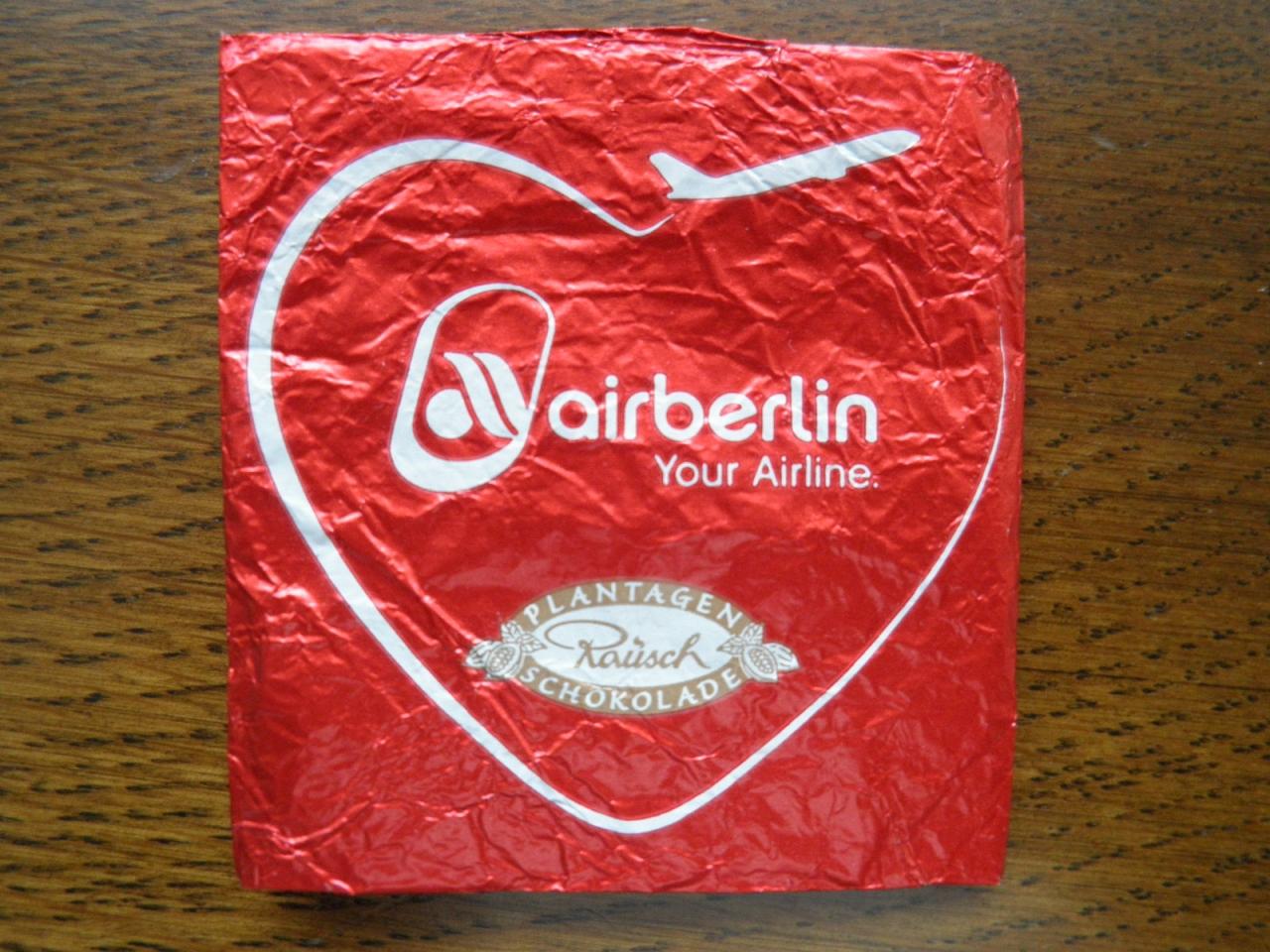 エアベルリンの機内で配られたチョコレートの包み紙がかわいかった♪