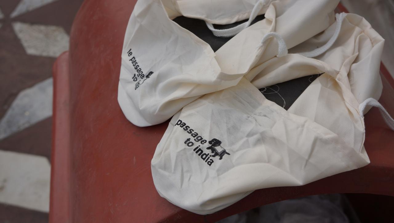 これ、タージマハルの中でも同じようなことを、警備員がしてくれます。