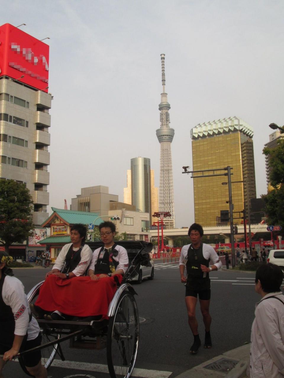 浅草の雷門通りを往く人力車とスカイツリー 2013.4.16 17:07