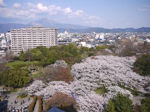 これだけの数の桜の木があるので上から見たら綺麗だろうなぁ〜と思い、天守閣に登りました。
