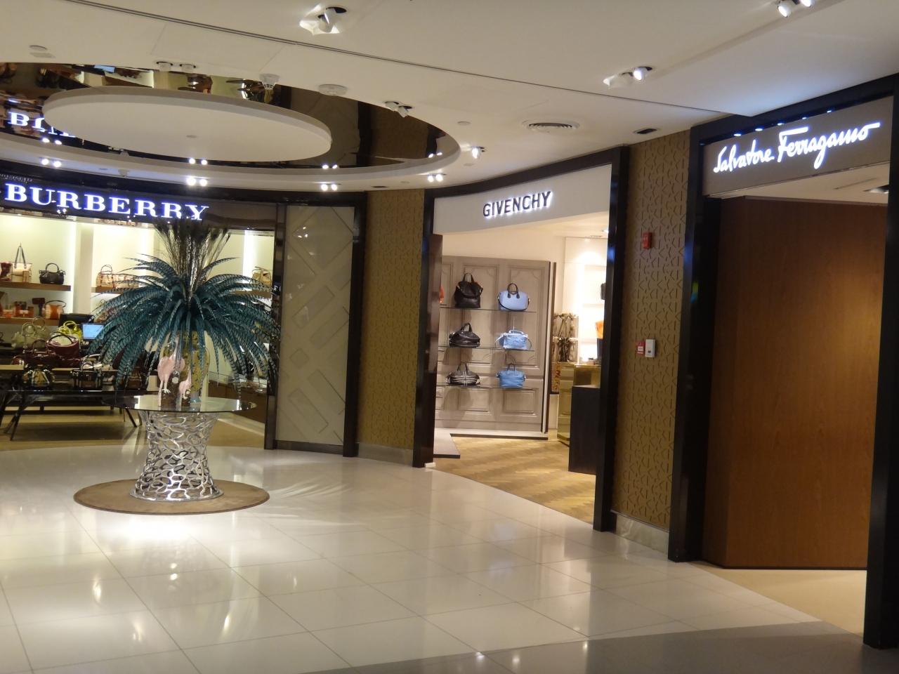 「BVLGARI」、「FOOD & CANDY」の免税店が見えます。 -