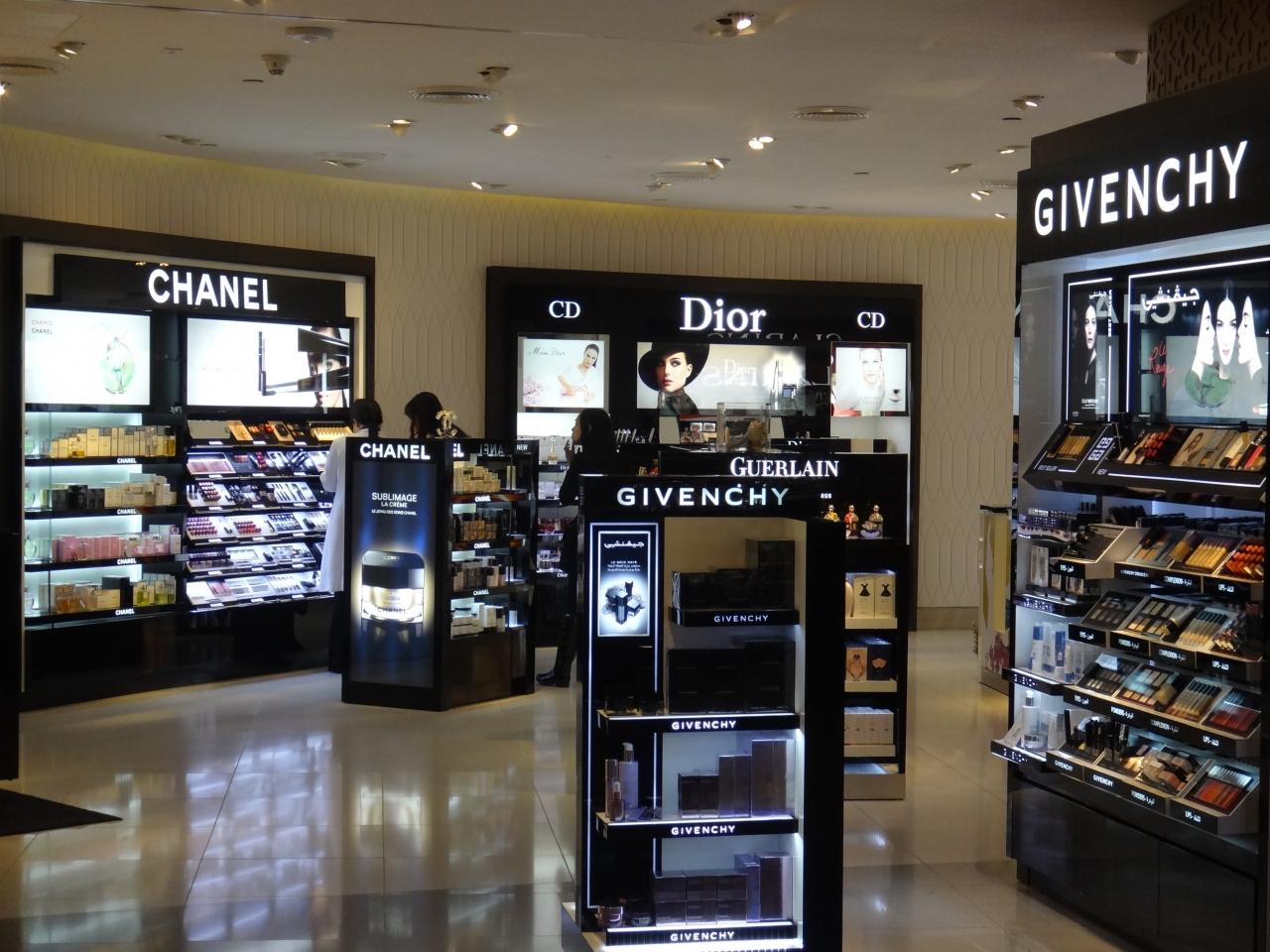 1階から地下1階を見下ろすと、「COSMETICS」、
