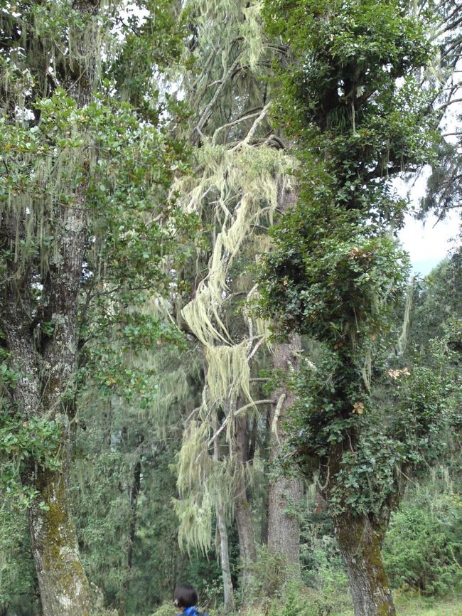 林の中にはエトメトと呼ばれる石楠花が満開。白、ピンク、ローズ、オレンジと色もバラエティに富んでいます。名も知らぬ紫色の花、風の当たる稜線に出ると、背丈の低い小さな花々が見られます。何てすてきな山登りなのでしょう。山道をハイティーンくらいの尼僧さんが2人と真っ黒くてどこに眼があるのか分からないようなけむくじゃらの犬が下りてきました。犬は番犬のように道案内のようにおとなしく2人についていきます。写真を一緒にとって貰いました。はるか下に見下ろせるパロの街まで買い物に行くということでした。きっと車道で誰かが車に乗せることでしょう。