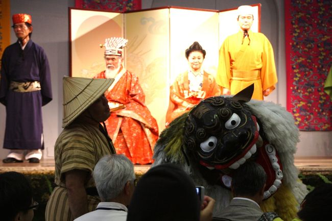獅子が、お客さんの頭をカジル・・・噛まれた人は御利益に授かる、、(内地と一緒かな・・)