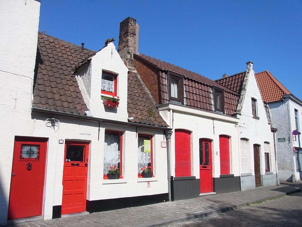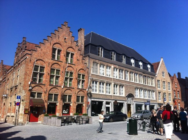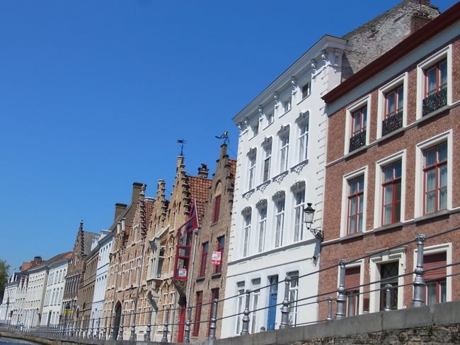 写真はブルージュの駅からのんびり広場に向かって歩く途中の家並みです。
