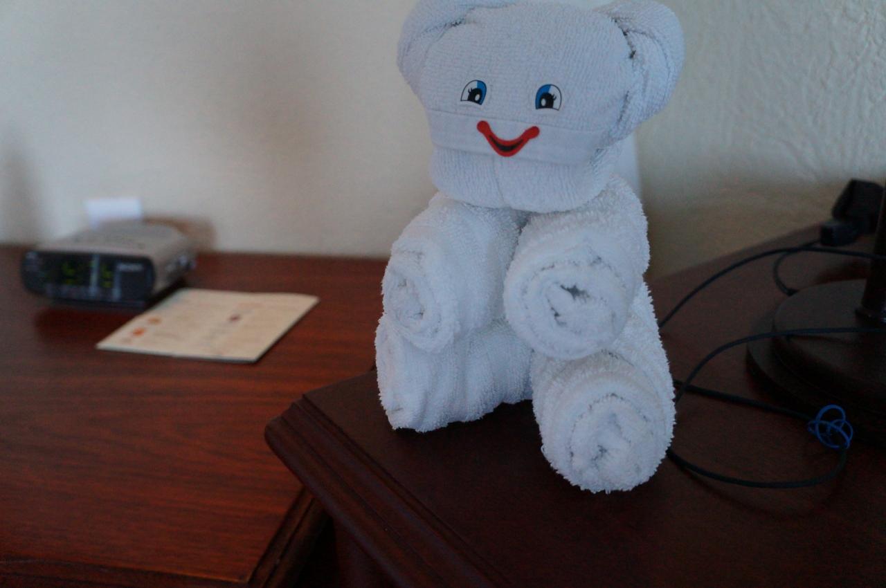 ホテルに帰ってきたところ、ハウスクリーニングがされておりタオルでこんなものが作られていました。