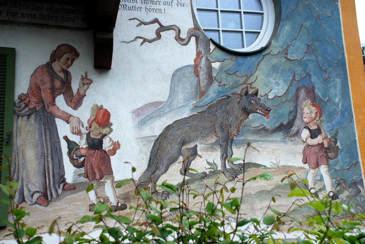 グリム童話を題材にしたフレスコ画もあって、これは赤頭巾ちゃんです。