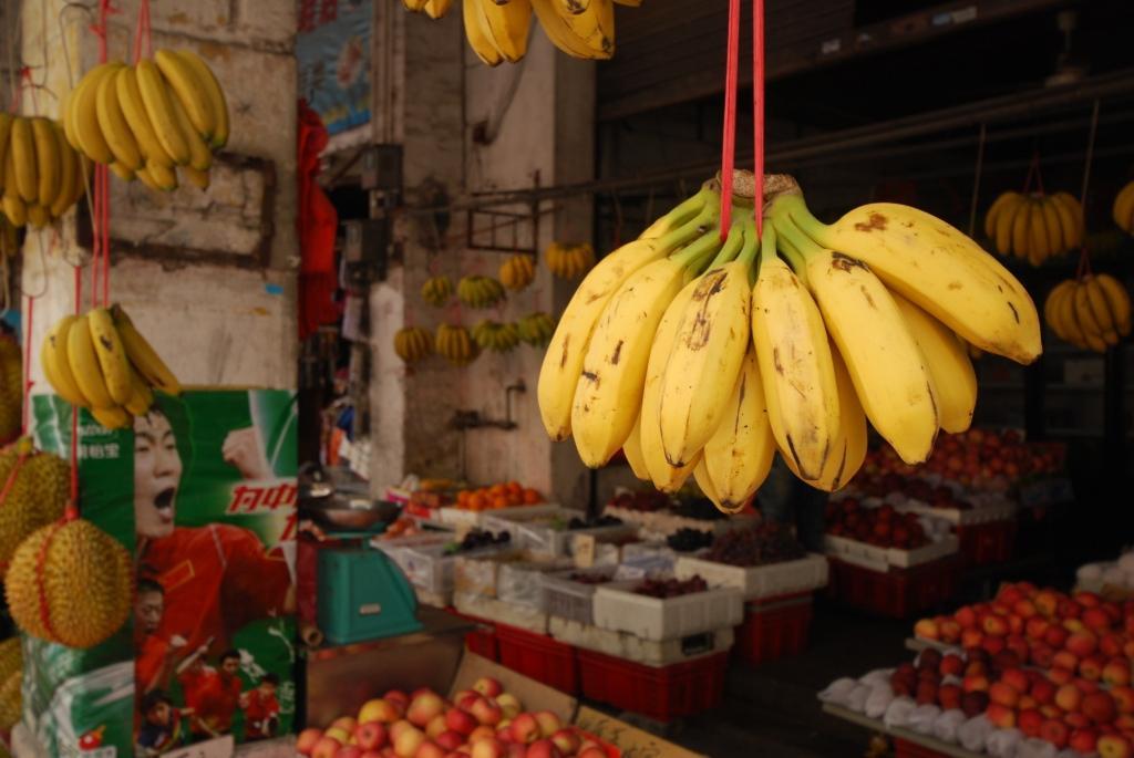果物屋さんには、この辺はドリアン、モンキーバナナなど、南国風の果物がたくさん!