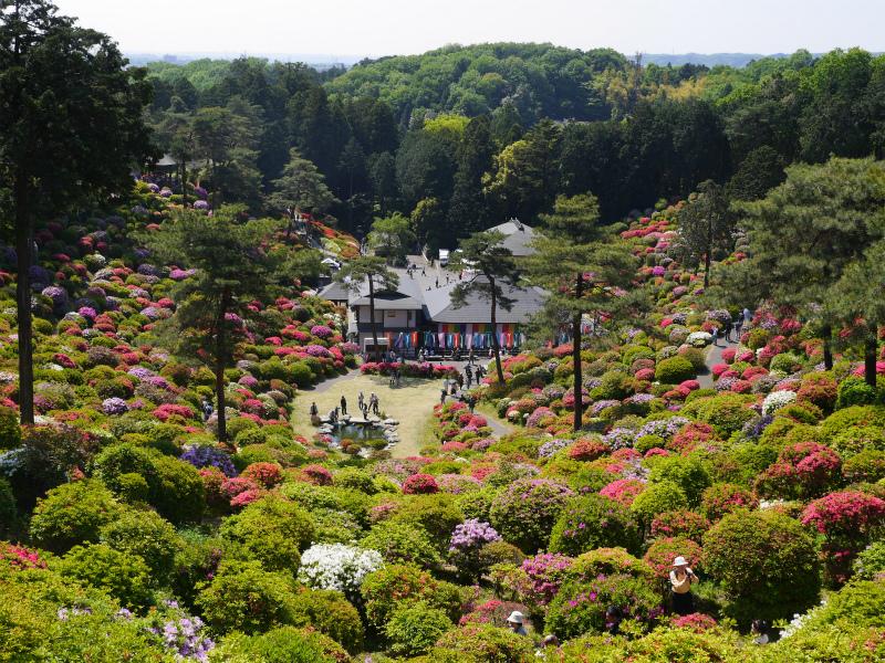 15種類約2万本のつつじが、一望に見渡せるすり鉢状の境内に咲きわたります。 -