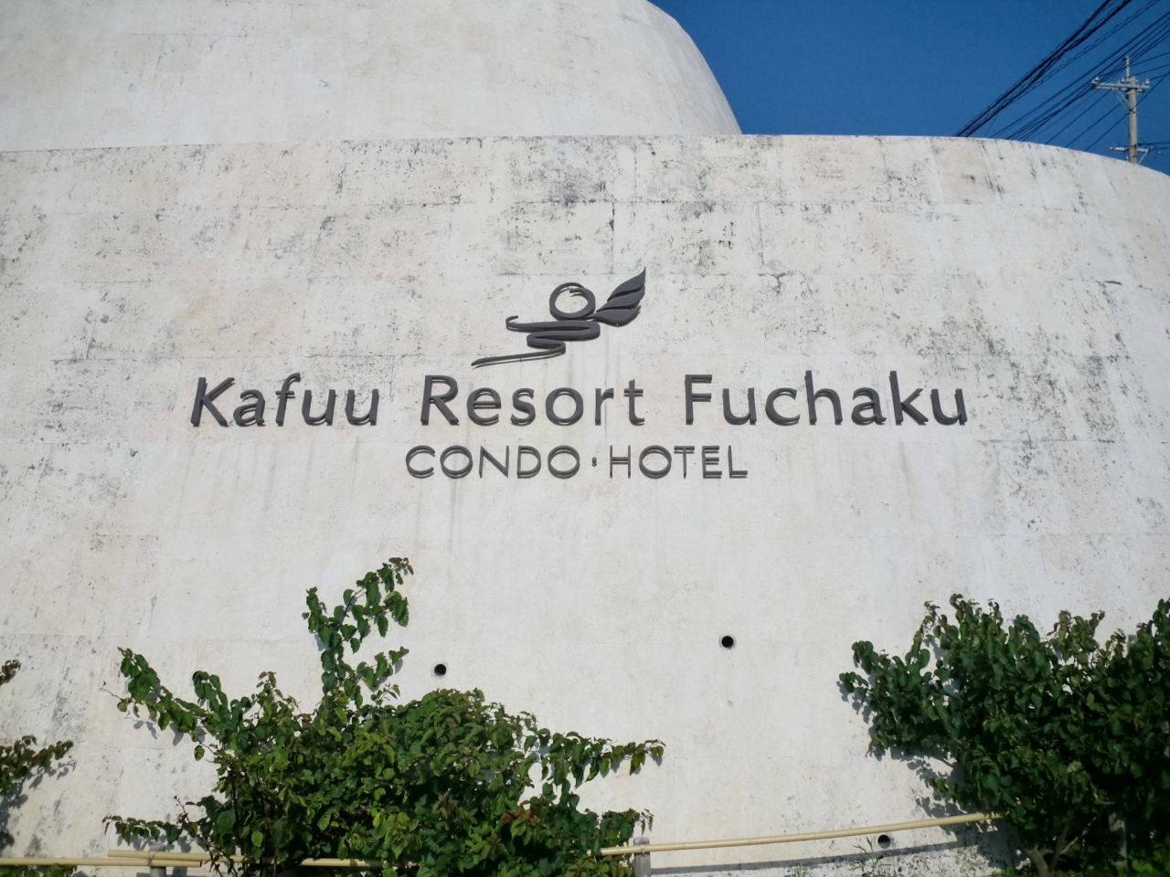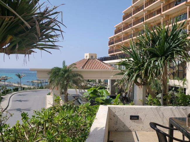 冨着ビーチと階下のプール、ホテル棟のエントランス