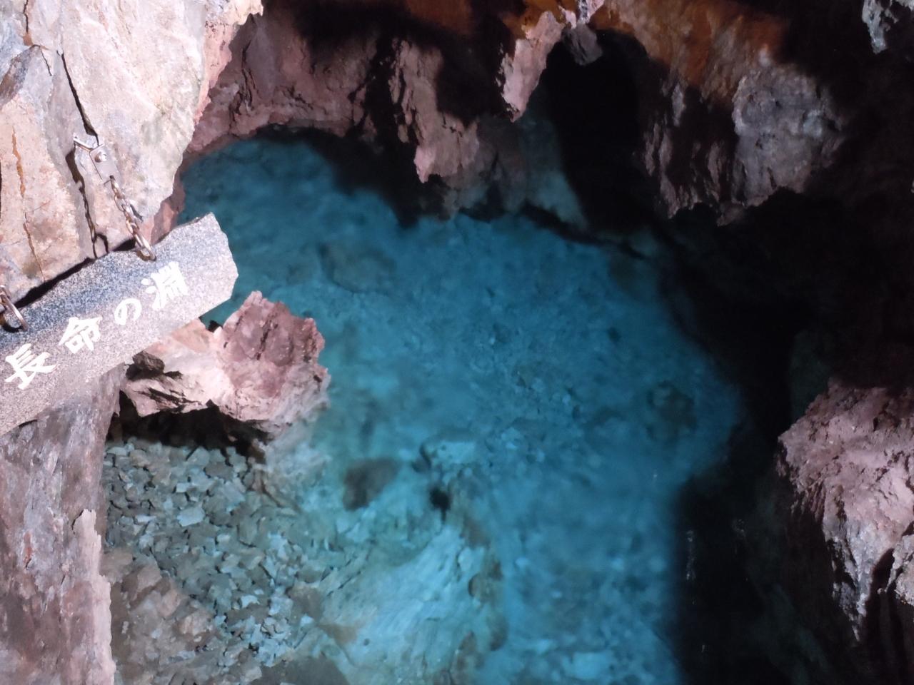 地底湖。ライトアップされているから綺麗に見れます。ここ見学用に開発した人たちすごいなー。