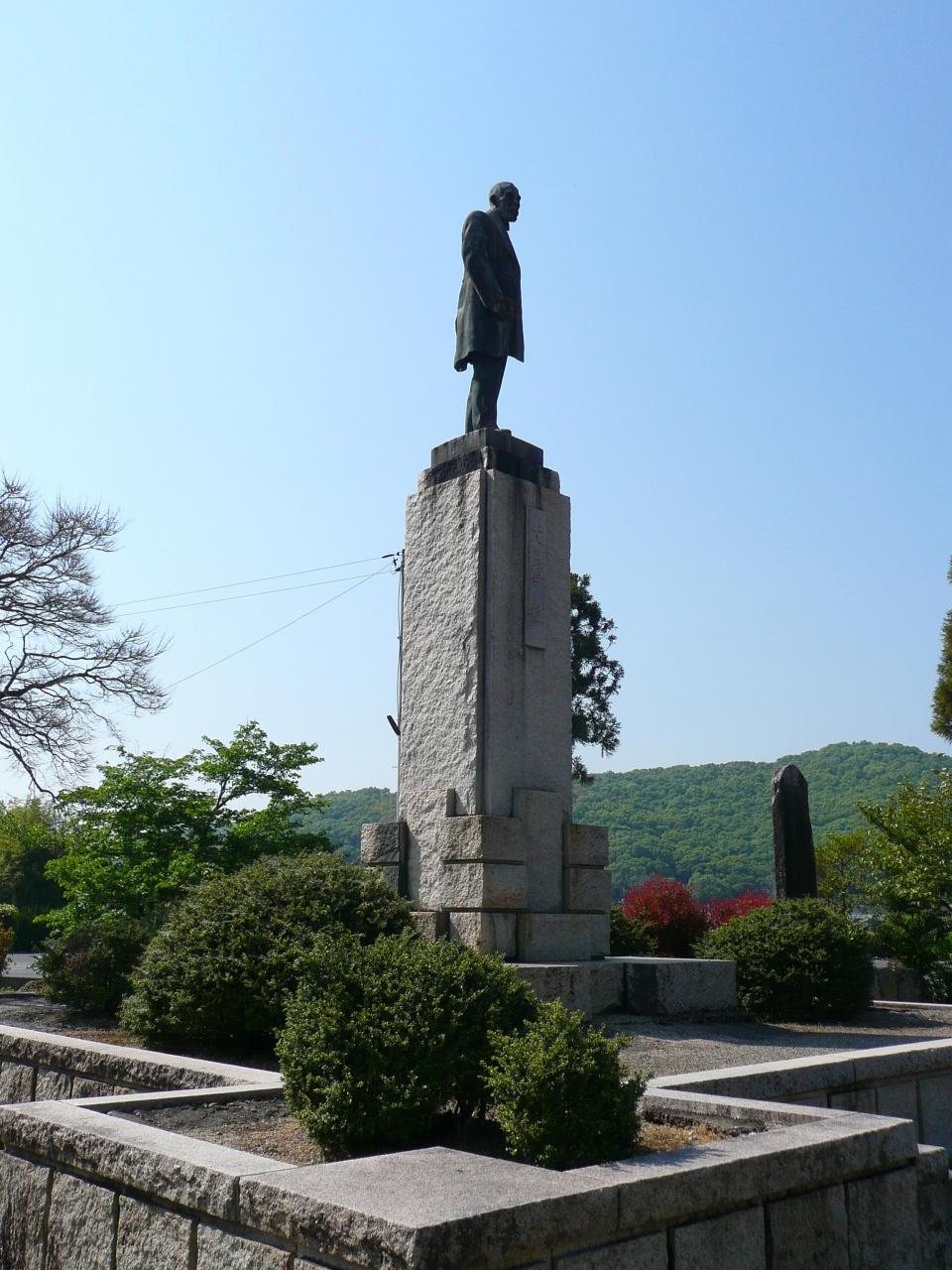 犬養家の遠祖・犬養健命は大吉備津彦命の随神であったとして吉備津神社への崇敬の念強く、神池の畔に犬養毅の銅像が建ち、吉備津神社の社号標も犬養毅の揮毫である。 -