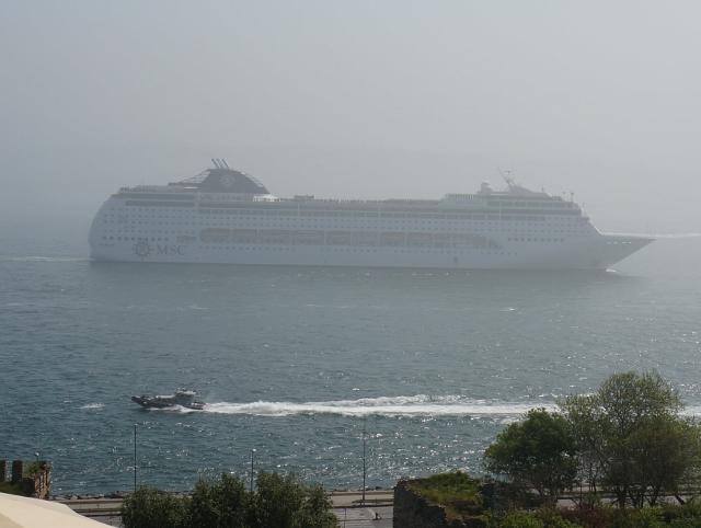 豪華客船が通って行きました。 -