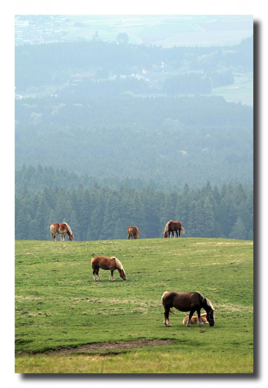 阿蘇山周辺では牛や馬を放牧する風景があちらこちらで見られます。 -