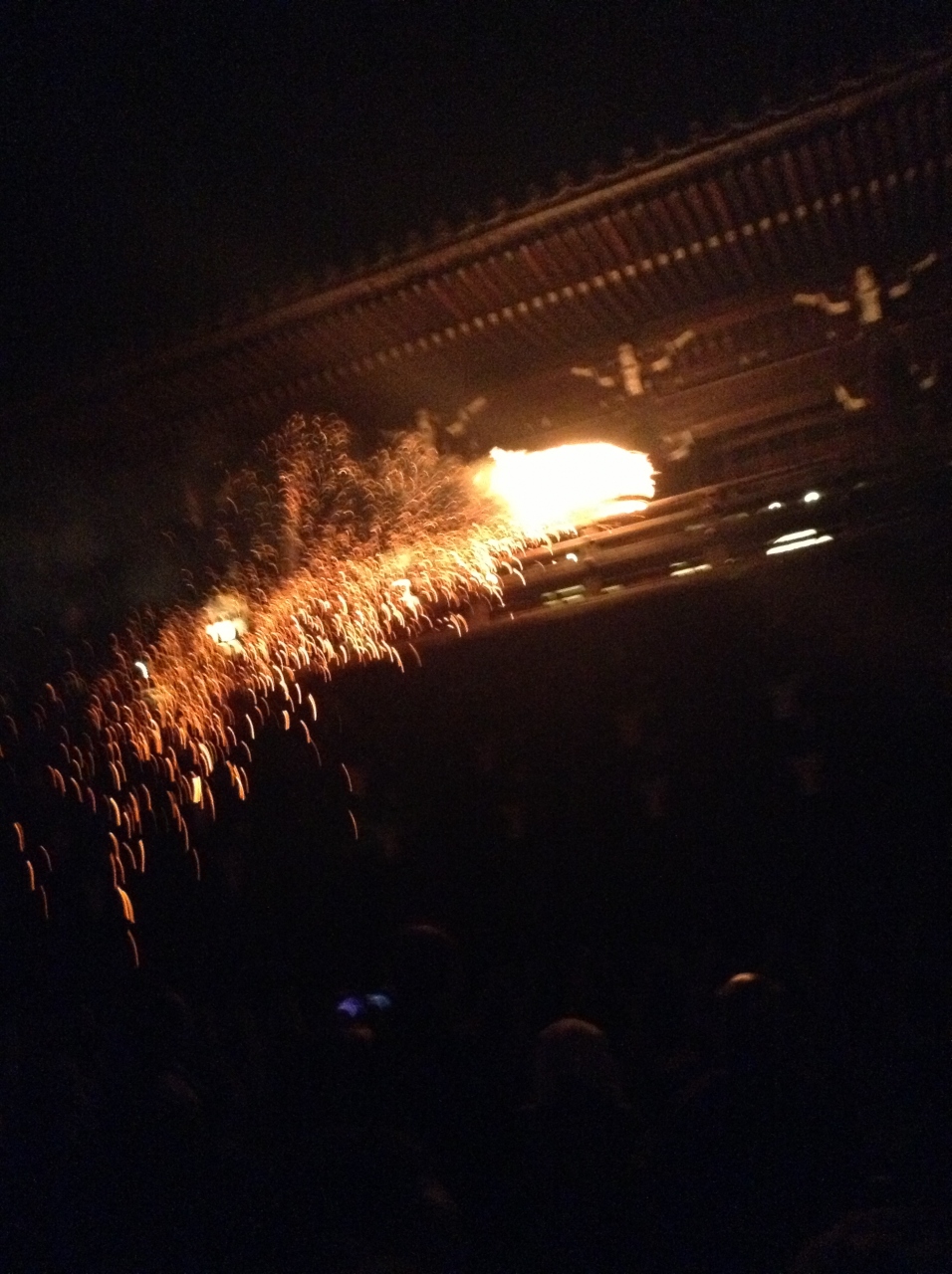 ここを松明に照らされながらお坊さんが一人ずつ登っていきます